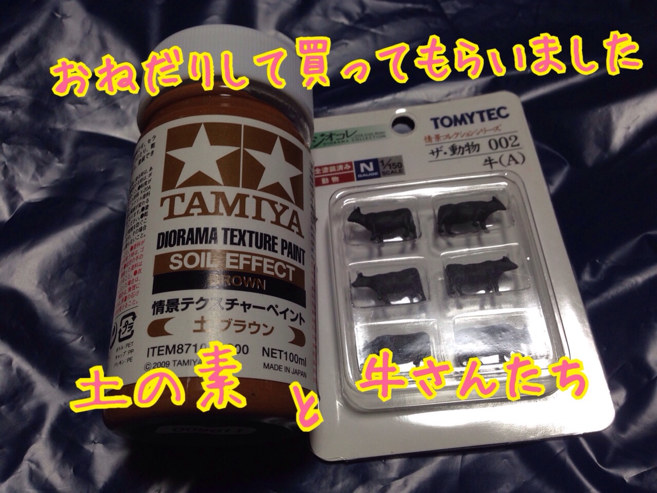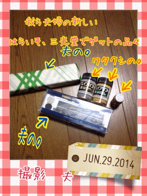 毎日のお勤めおつかれさまです ___ / * \ ヽニニニノ |(●) (●) /ノ |(__人__)| /^/ .| `⌒´ | ( ' ̄ ヽ _/  ̄ ̄ ̄| = V // | | // | 私の行きたいところに連れてってもらいましたΣd(゚∀゚d) 京都市西京区大原野神社。 私の大好きな神社です。 そのあと、 京都のポポさんへ。 イオンモールについて、ポポさんへ走りたいところですが、その前に買わねばならぬものがあったので数点購入。 そして、ようやく夫の待つポポさんへ。 夫との合流もそこそこに、いいものみーっけ♡(๑✧◡✧๑) 常々な話なのですが、おねだりするのが土の素と牛さんたちってどーよ?|ω・`) もーちょい他のものは… ワタクシの女子力wが下がってる((( ;゚Д゚))) 大変!女子力アップをはからなきゃ… 閑話休題。 お宝発見したらしい夫はサラッと土の素と牛さんたちを買ってくれましたΣd(゚∀゚d) イェーイ!お大尽!いよっ!太っ腹!! ちなみに本日発見した夫のお宝は… 別に一枚撮るだけで良かったのですが、なんか中身も撮らせてくれたので一応貼ります(´・ω・`) 購入後、娘のお迎えの時間が迫っていたためさっさと帰ろうかと思ったんですが、「あと五分だけ」となんか寝起きのようなことをいいながら夫がEF58特急色(名前は今聞きましたw)をさがしているではありませんか。 聞くと、今日のお宝をひっぱるやつらしいのですが… 嫁「家になんかいっぱいあるからそれでえーやん(´・ω・`)」 夫「家のやつではないんだなー(`・д・´)」 嫁「走りゃ何でもえーやん(´・ω・`)」 夫「∑(ΦдΦメ)」 なんか、電車好きな人からしたら違うみたいですわよ、奥さま。(;´・ω・) 違いっぽいことを何か教えてくれたのですが、内容は綺麗に左から右に流れて行きましたwww 電車好きって大変だねー┐(´-`)┌ そんなこんなで、本日の小旅行でした。 折角、牛さんたちを買ってもらったので先日から着手している集落に置く予定です。 そして、早いうちに新しい土の素も使いたいと思います。 |